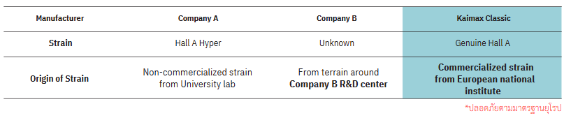 Original Strain from European National Institute (สายพันธุ์ดั้งเดิมจากสถาบันแห่งชาติยุโรป)–