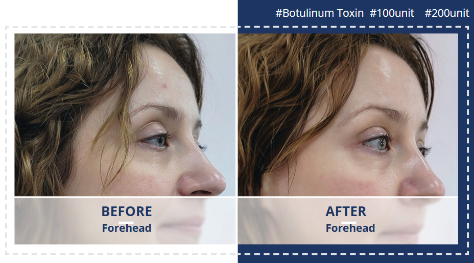 2. ใช้เข็มเบอร์ 30 ฉีดในปริมาณ 0.1ml ใน 5 จุดของกล้ามเนื้อ corrugator ทั้ง 2 ข้าง และกล้ามเนื้อ procerus ซึ่งจะรวมเป็น 20U